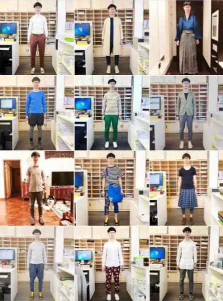 當時他剛從日本旅行歸來,就穿了條日本買的男裝裙去參加,講“附著在衣著上的社會定式”。講座主題和他的穿著相得益彰,在講座上,他說:“我很喜歡用我一身打扮去挑戰學生思維和學院體制。”