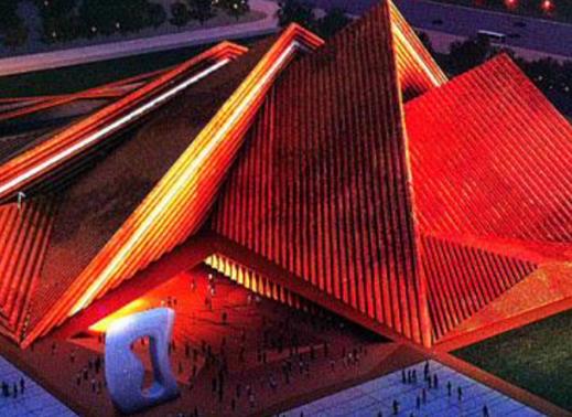 大同市美術館占地77畝,建筑面積32238.5平方米,地面建筑高度36米,由世界著名的英國福斯特建筑事務所及中國建筑設計院設計,理念新穎、功能齊全。美術館主體為全地下結構,上部采用鋼結構空間桁架體系。建筑主體由四個從36米到24米高度不等的三角錐形相連而成,形成雄偉的金字塔建筑布局,是我市重點工程之—。最獨特的設計元素之一就是金字塔式幾何外形。兩對金字塔以富有動感、逐漸上升的方式排列起來,形成寬敞宏偉的巨大展廳,可以用于放置超大型藝術作品。對藝術家而言,這個非常具有三維雕塑性的空間極具挑戰性;對于參展藝術品而言,這種建筑形式既能對展覽空間提供一具有強烈對比的背景,也能讓建筑本身融為藝術展覽的一部分。