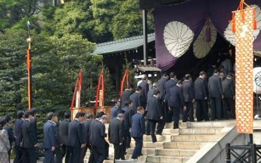 2015年4月21日起,日本靖國神社舉行為期三天的例行春季大祭活動。日本首相安倍晉三供奉“真榊”祭品。